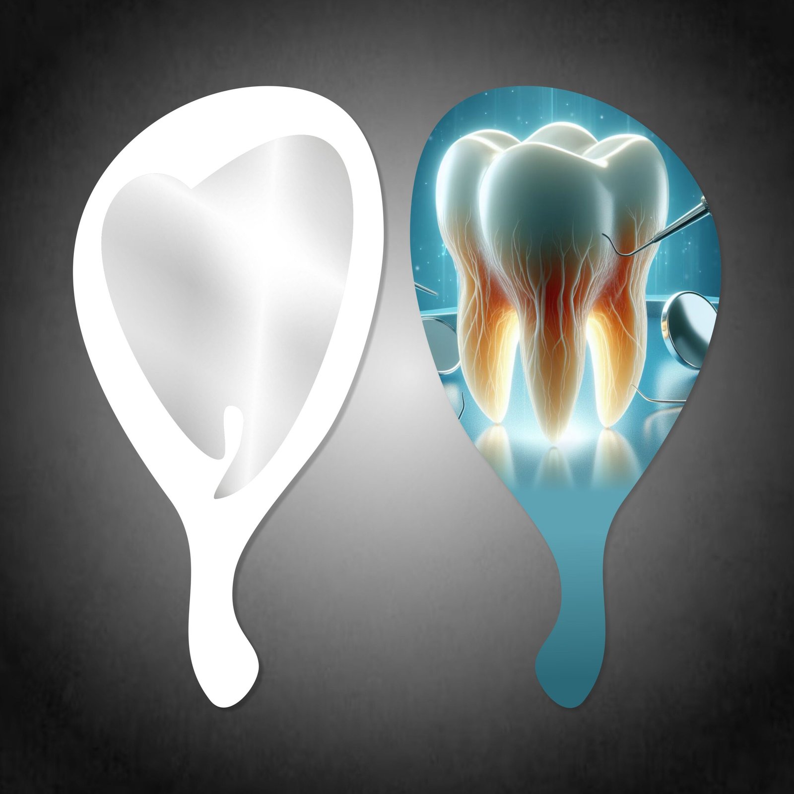 Add a bold and modern touch to your dental operatory with the Hand Mirror Toothshape – Nerve View. Made from high-quality acrylic, this uniquely tooth-shaped mirror features a striking UV-printed nerve-themed design on the backside. Lightweight, durable, and stylish, it’s perfect for enhancing your clinic’s ambiance while serving its daily purpose during consultations and smile reveals.