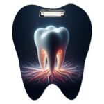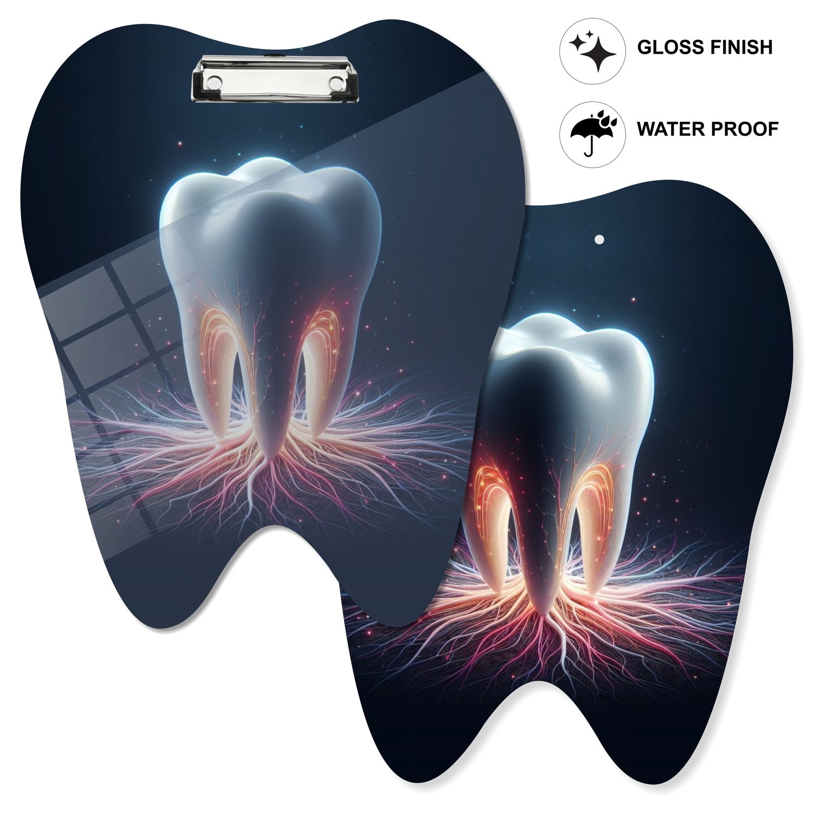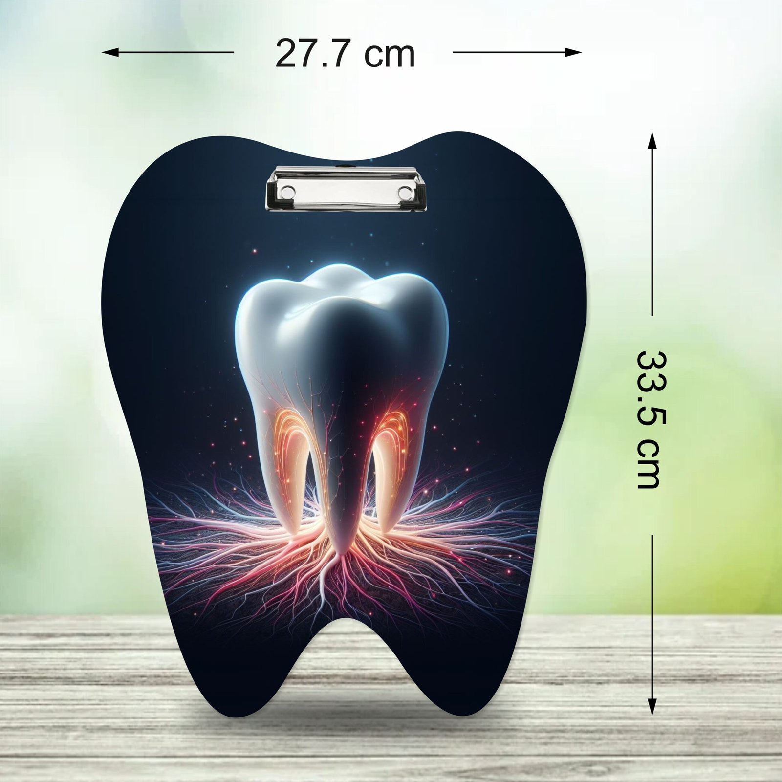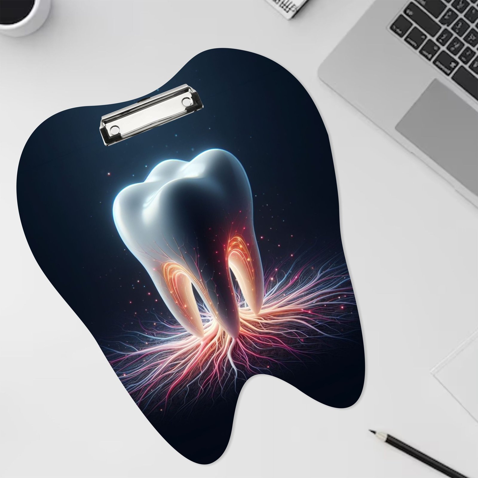 - Tooth-shaped clipboard made from high-quality, durable acrylic